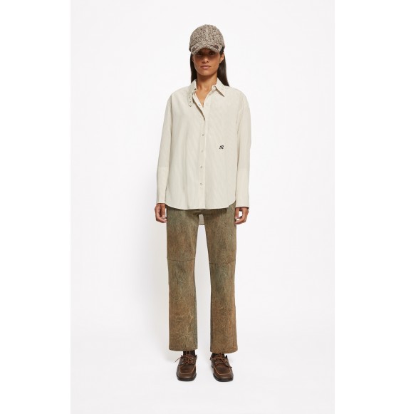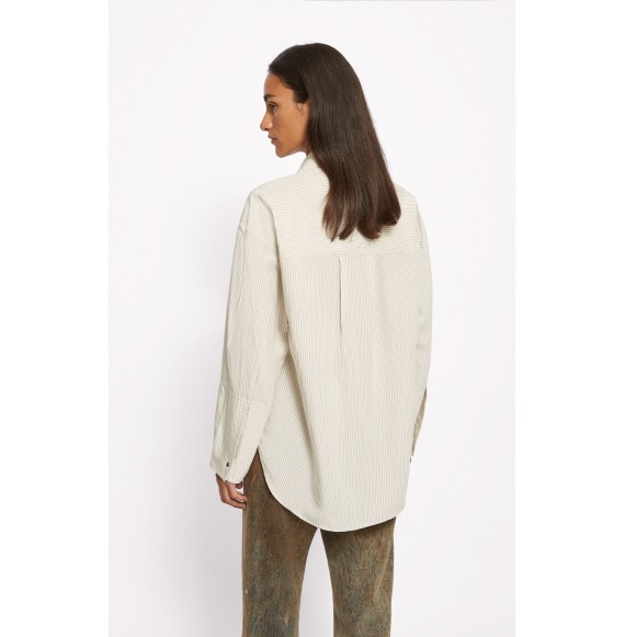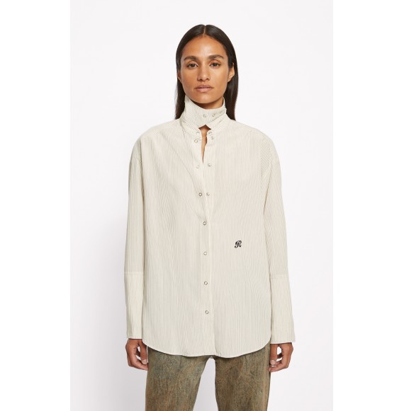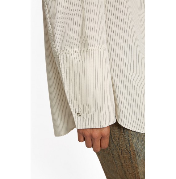 Manteau long à coupe droite en drap de laine, fermé par un double boutonnage et doté d’une ceinture amovible.