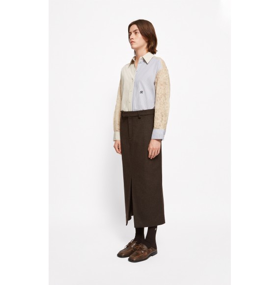 Chemise à la coupe droite et ample, dotée d’un col montant avec mentonnière intégrée, et de boutons...