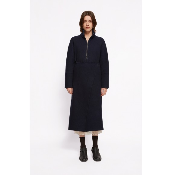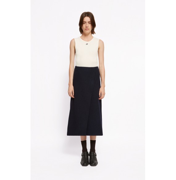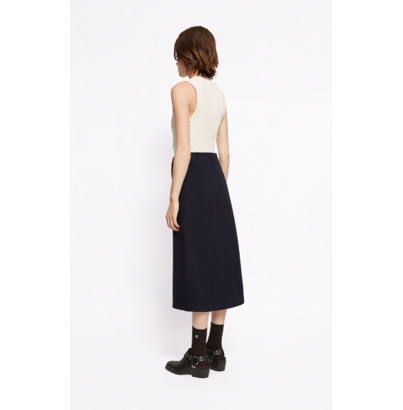 Jupe midi en laine Roseanna, modèle MARTIN, coloris Dark Navy.