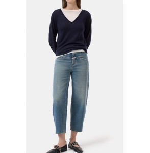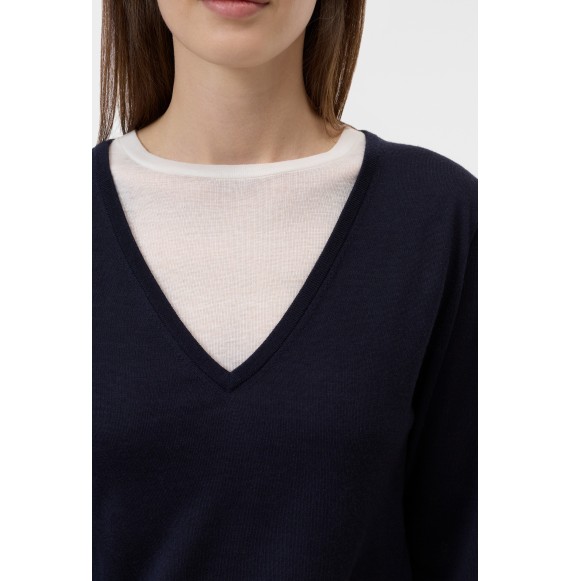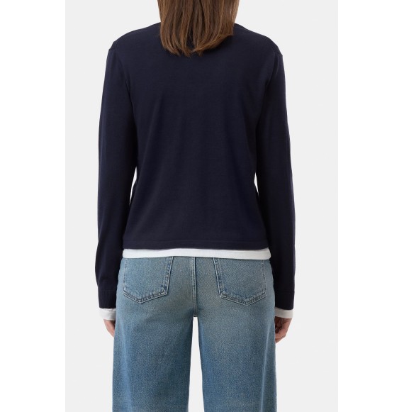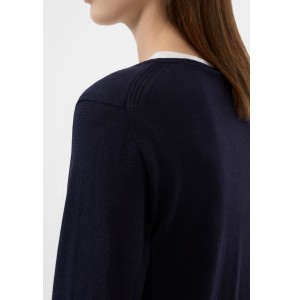 Le pull à manches longues et col rond a une coupe décontractée et est fabriqué dans un mélange de laine et de soie avec des détails en côtes...
