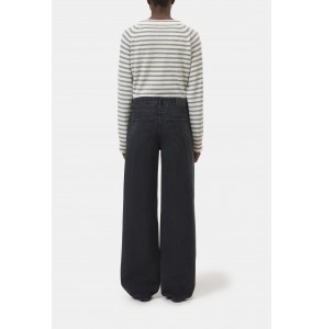 Modèle Nikka en coupe large, taille mi-haute et jambes longues. En denim noir 11 oz. avec effet sel et poivre, twill 3/1 et construction ring-ring. Tissé en coton bio chez Candiani. Partie de notre ligne A BETTER BLUE. 100 % fabriqué en Italie.