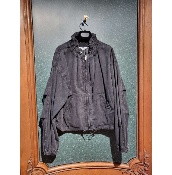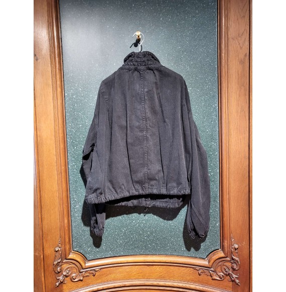 Veste courte façon cuir souple Col avec coulisses et liens à nouer Manches longues Fermeture zippée devant Poches latérales coupées Poignets...